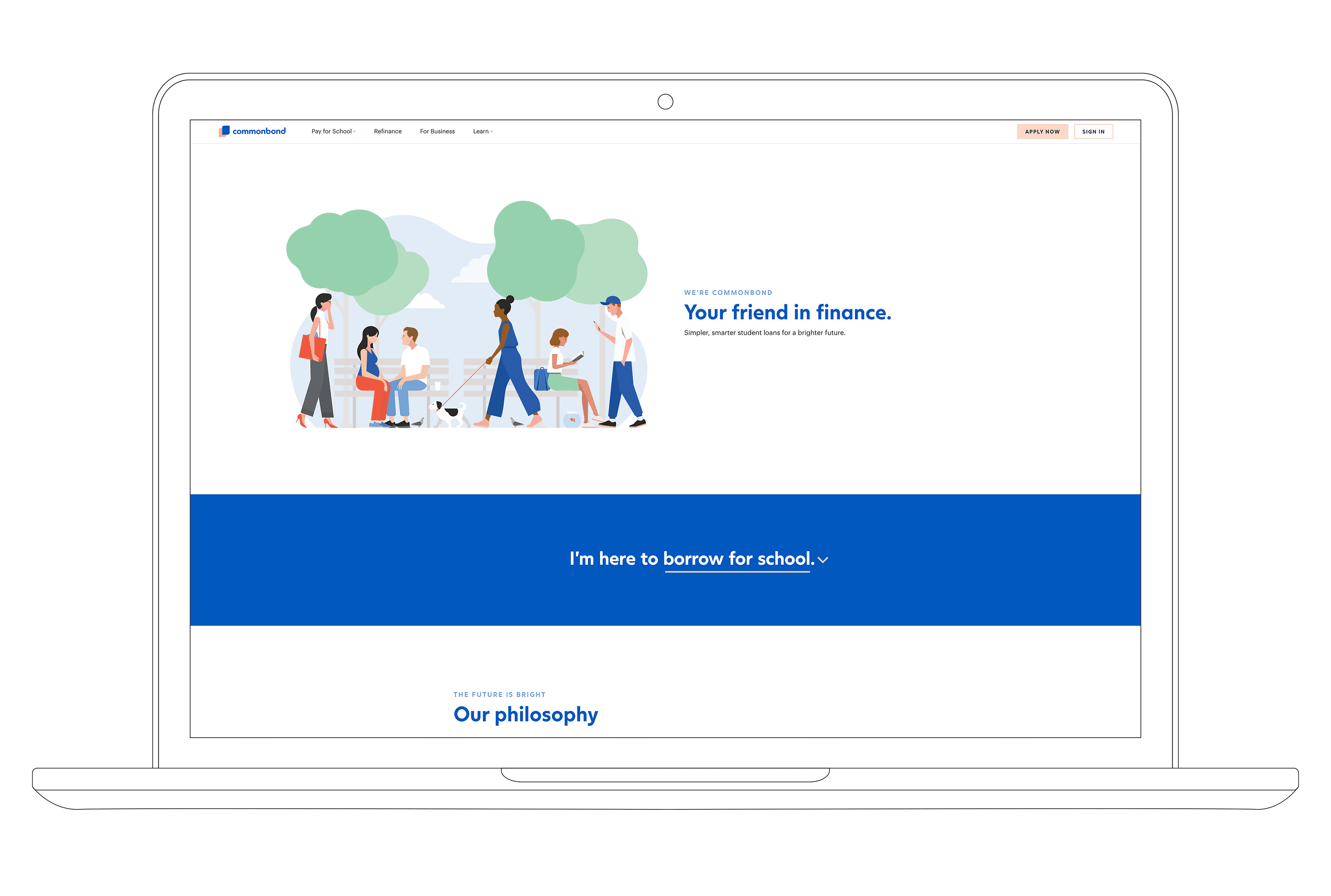Series-D fintech startup CommonBond found themselves with a brand that they had outgrown. 7 years of agile growth left them with inconsistent design and messaging across their website, product and marketing materials. To support strategic expansion they needed to develop a more mature & consistent brand.